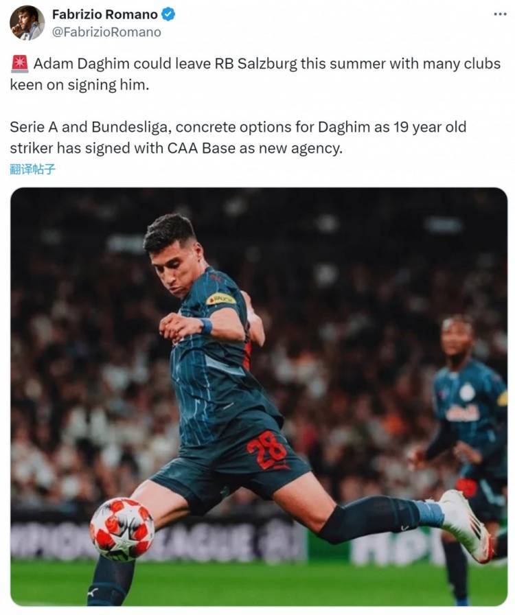 罗马诺透露,达吉姆可能在今夏离开萨尔茨堡,多家俱乐部有意签下这位小将,意甲和德甲都是他具体的选择,达吉姆已与CAA Base经纪公司签约。