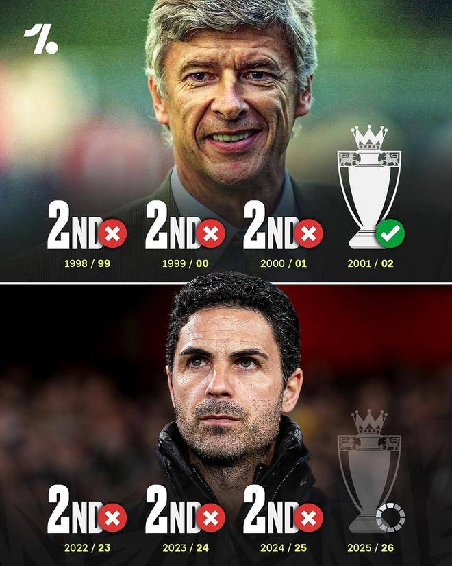 根据talkSPORT的报道,自阿尔特塔担任阿森纳主帅以来,他带领球队获得的唯一奖杯是2020年的足总杯。从那时起,阿尔特塔不断努力将球队带回顶级联赛的舞台,在过去的三个赛季中,球队在英超联赛中屡屡获得亚军。然而,让人感到遗憾的是,阿森纳自2002年之后,就再也没有品尝过英超冠军的滋味,这无疑给球队的荣耀和球迷的期待增添了更多的迫切感。