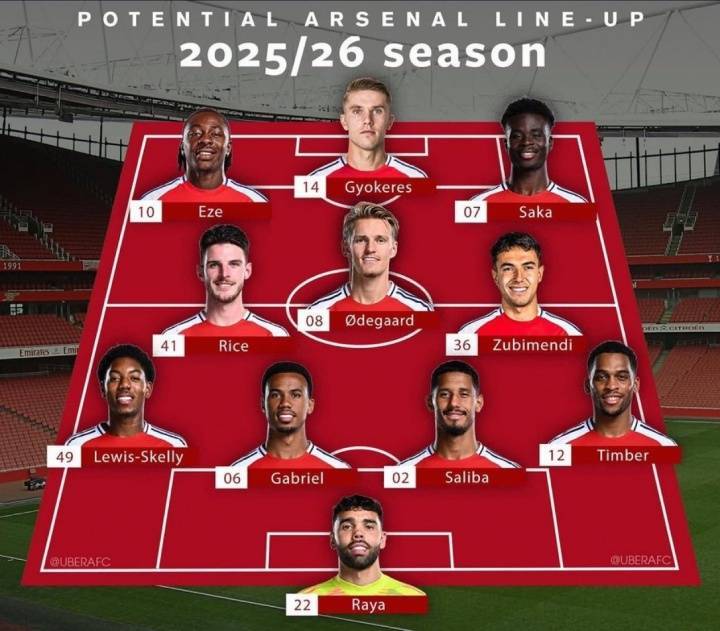 外媒PurelyFootball晒出阿森纳新赛季首发阵容,并抛出疑问:还有什么能阻止阿森纳夺冠?